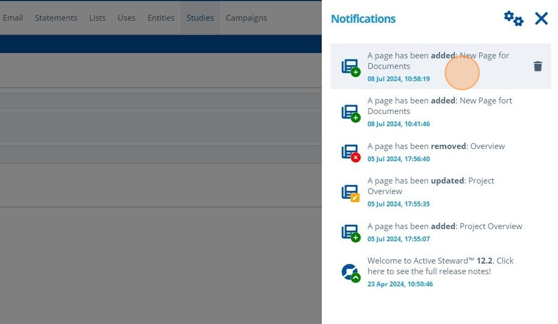 2. 👆 Click on the notification to navigate to where in Active Steward it relates to.¶