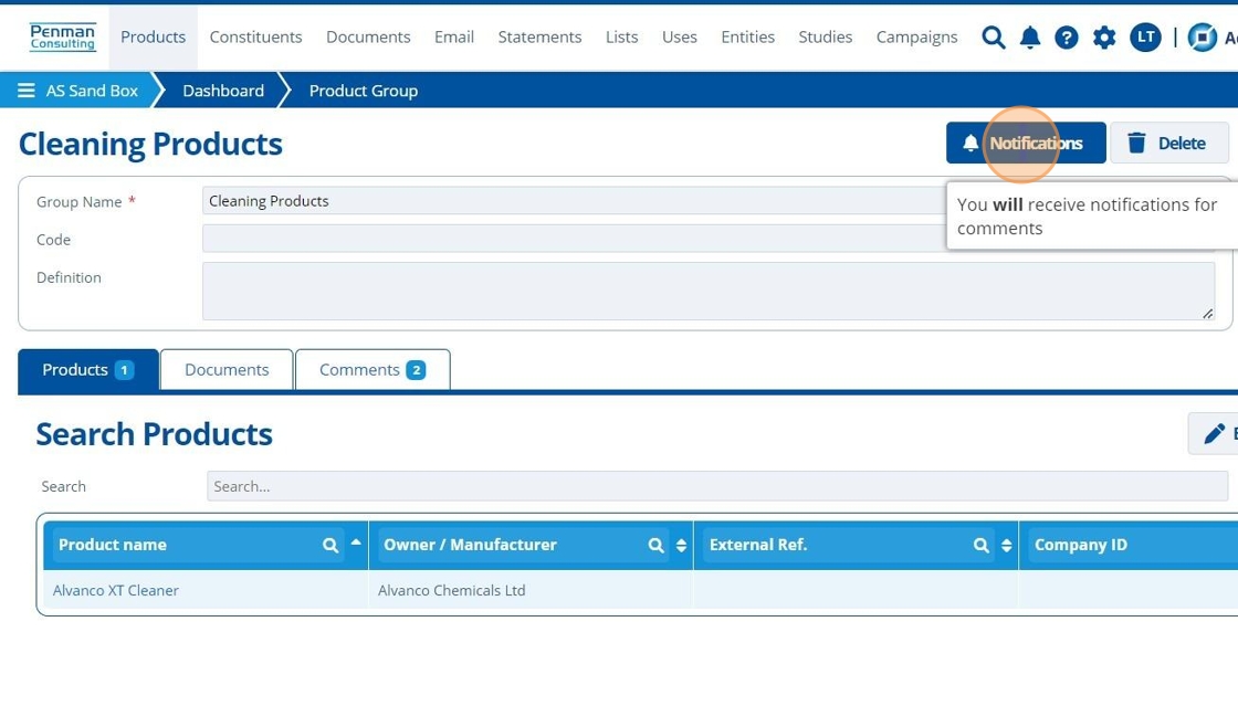 16. On a Product Group, 👆 click the "Notifications" button to turn on notifications. Notifications will be sent for:¶