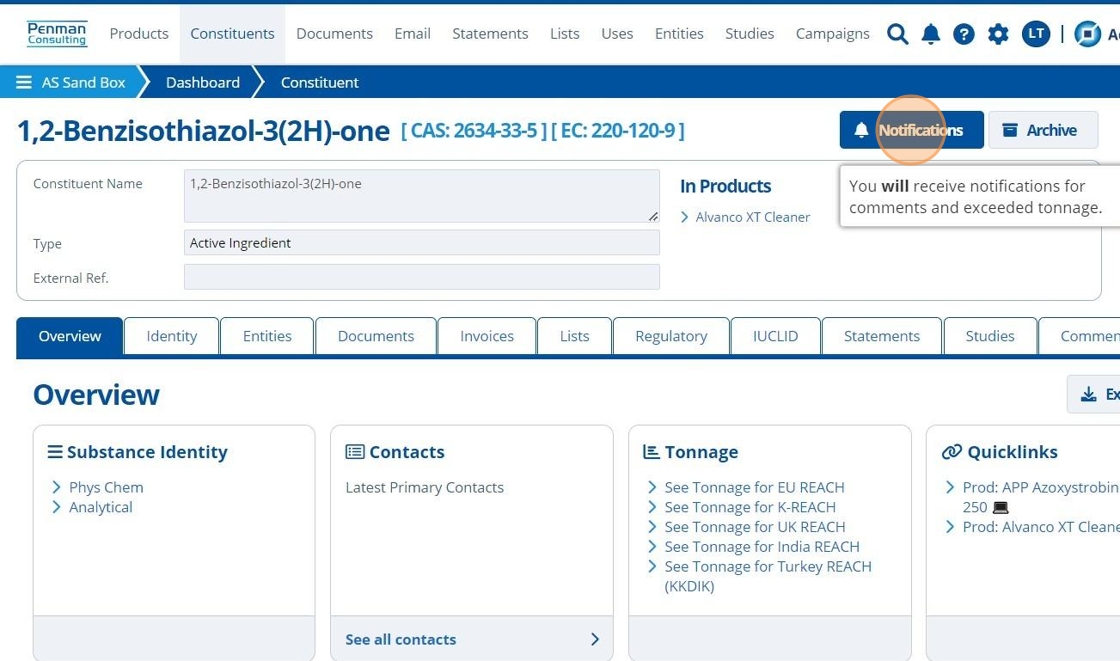 Constituents in Partition Present in Updated Inventories - If a new inventory is added or an existing one is updated, users will receive notifications when: