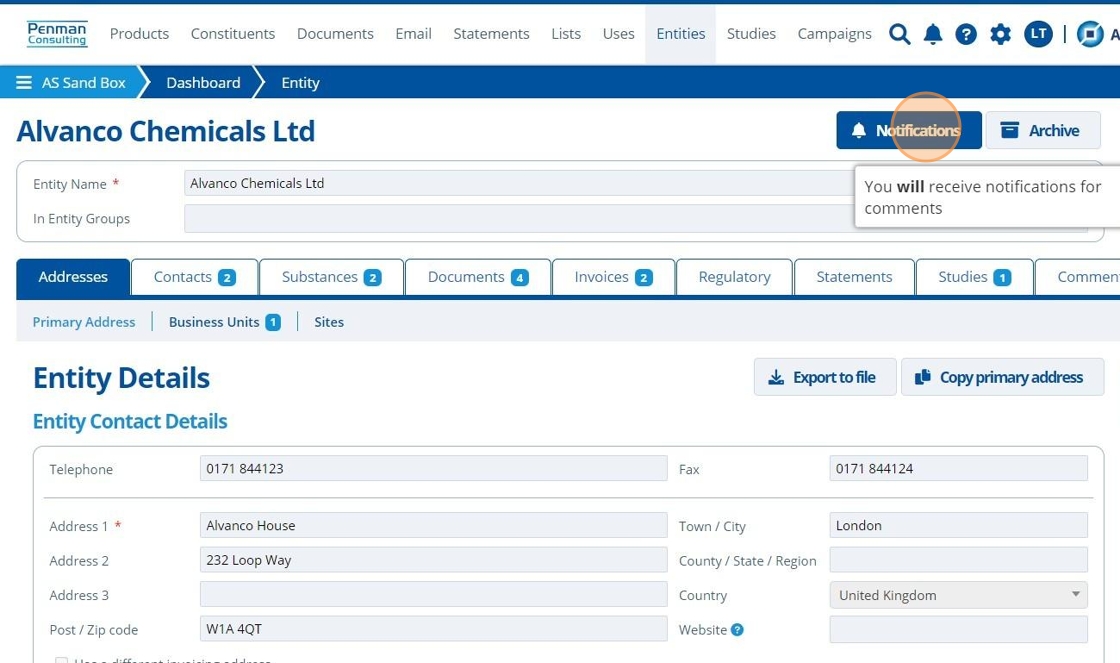 18. On an Entity, 👆 click the "Notifications" button to turn on notifications. Notifications will be sent for:¶