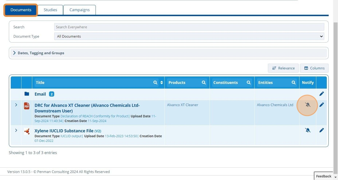 10. 👆 Navigate to the "Documents" tab 👉 Click the bell icon to turn notifications on for a document.¶