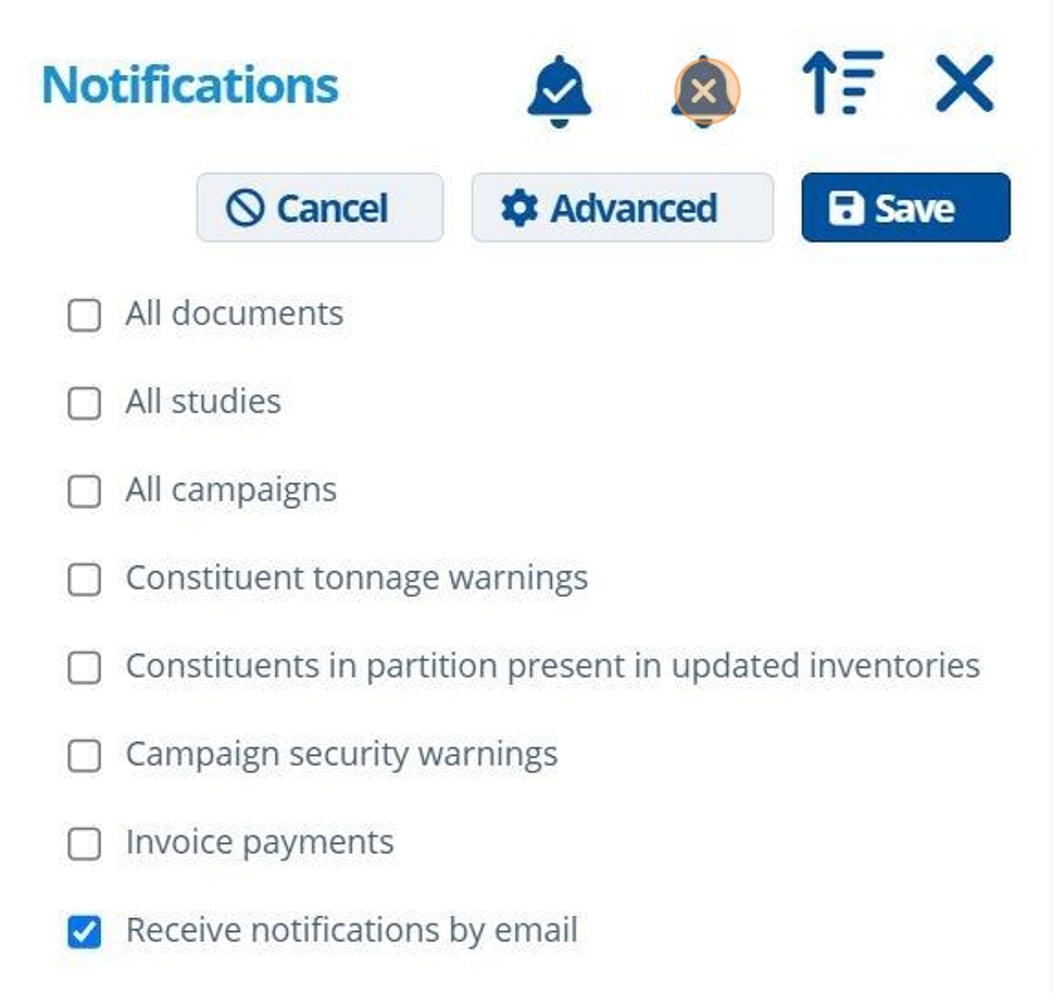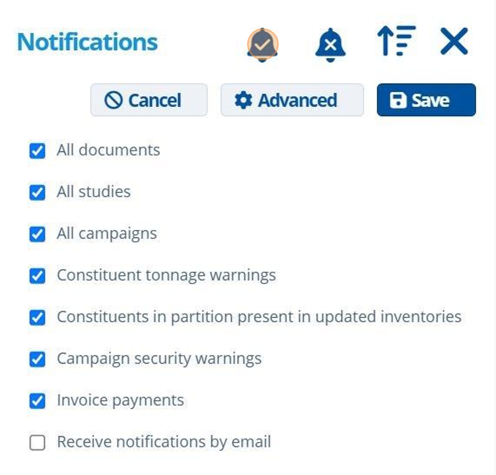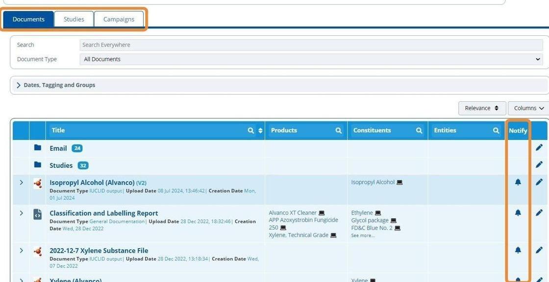 Document / Study / Campaign notifications can also be individually enabled this way.