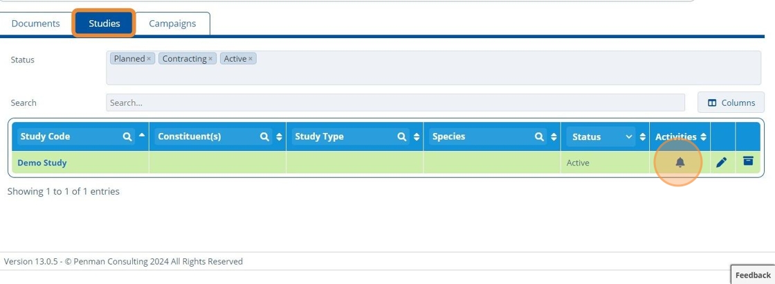 12. 👆 Navigate to the "Studies" tab 👉 Click the bell icon to turn notifications on for a study.¶