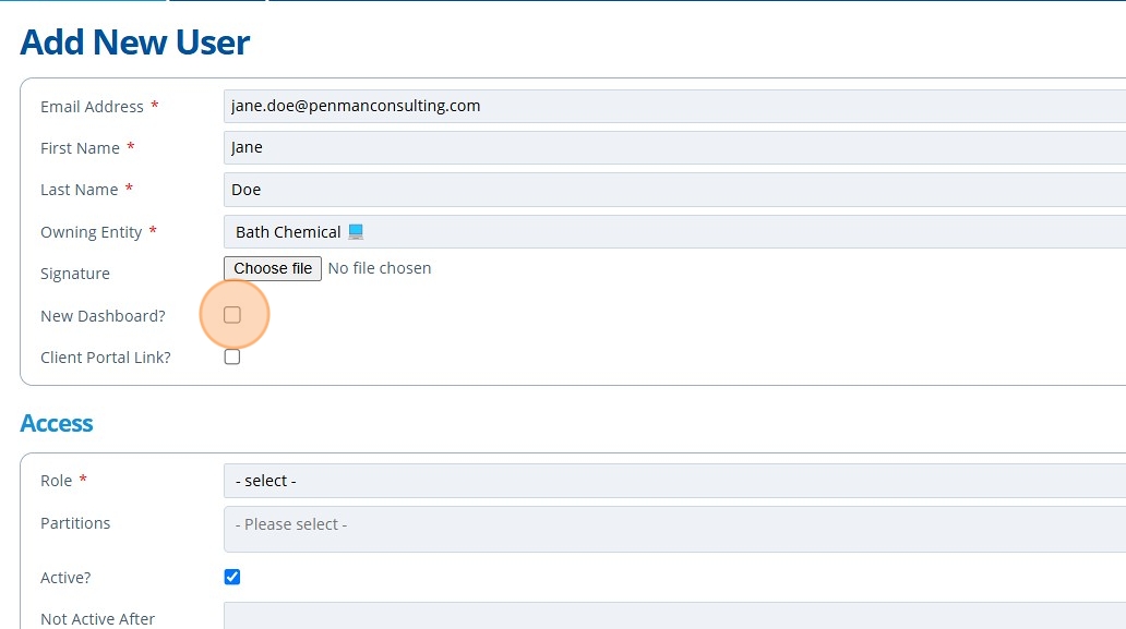 5. 👆 Tick "New Dashboard?" to allow the contact to view the newer version of the homepage. Leaving this unticked means the user will see the old version.¶