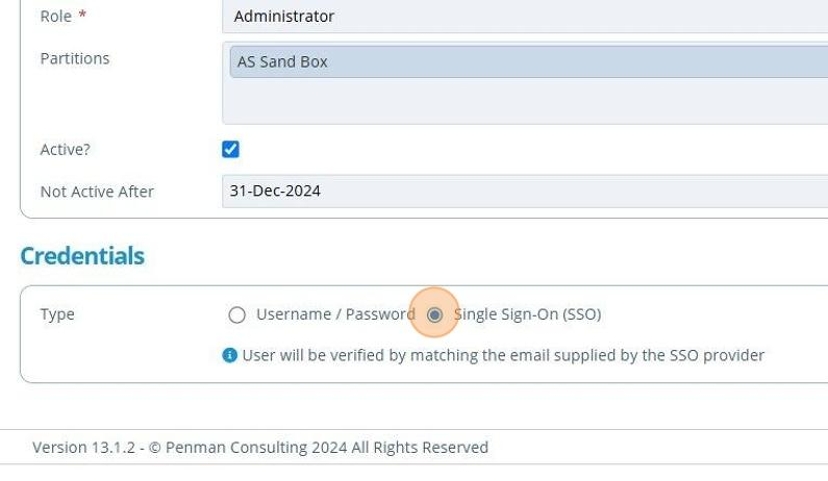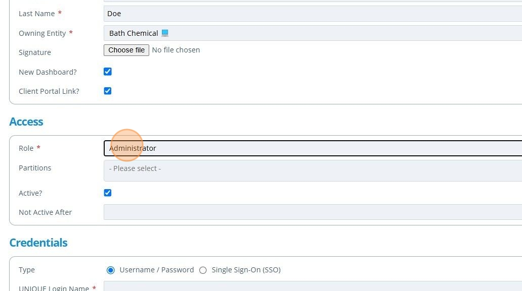 11. If the user is to log in using a general username and password, 👆 select the "Username / Password" option and ✍️ fill in the UNIQUE Login Name and Password fields.¶