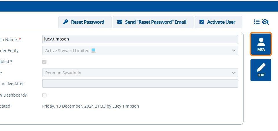 After creating the user, 👆 click the "MFA" option to make the user use an authenticator app each time they log in. This is for added security.