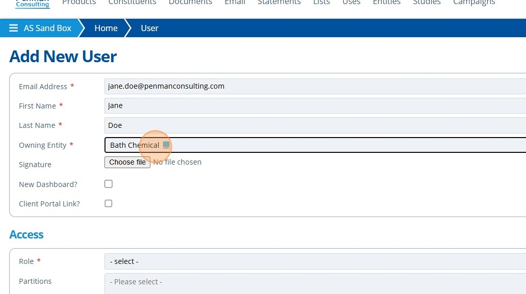 The user will have the "Role" (from the prior step) for each of these partitions. The role given for each partition can be edited after saving - see this tutorial. Partition access can be edited later.