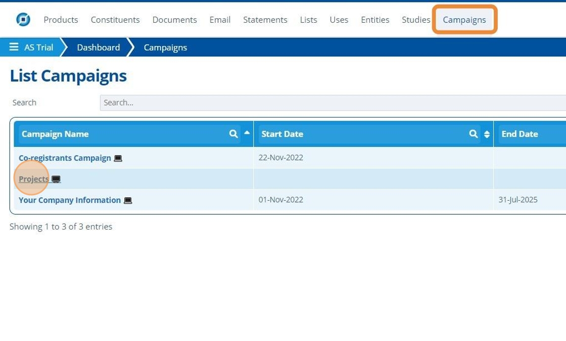 10. 👆 Navigate to Campaigns 👉 Select the campaign of interest from the list¶