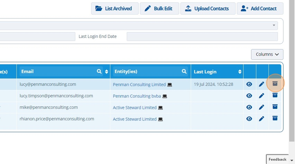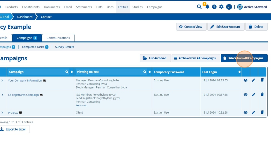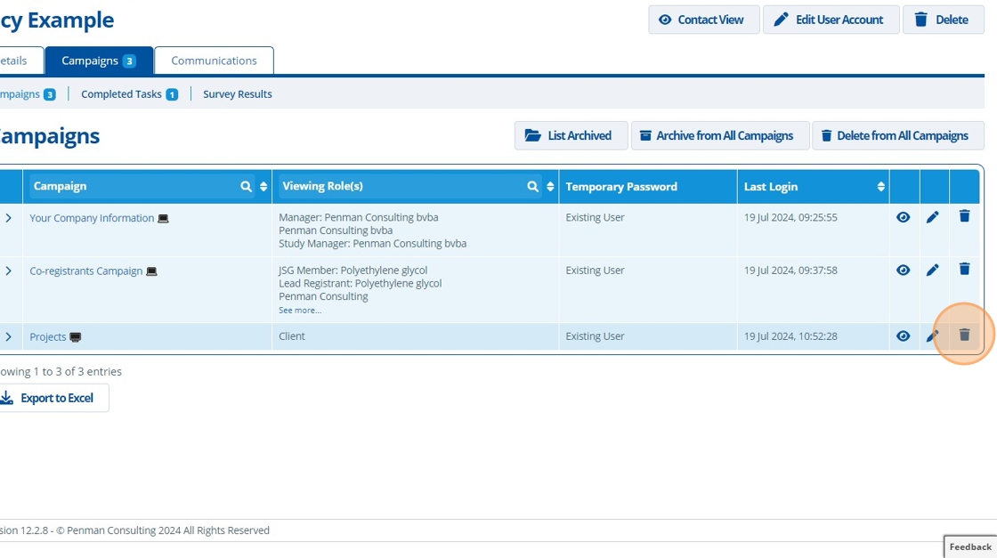8. 👆 Click the bin icon next to the campaign to delete the contact from.¶