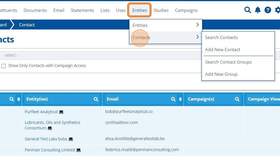 1. 👆 Navigate to Entities 👉 Contacts¶