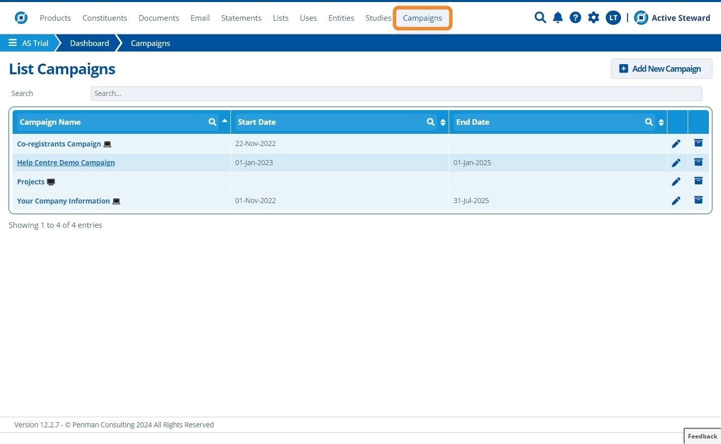 1. 👆 Navigate to Campaigns 👉 Select the campaign of interest from the list.¶