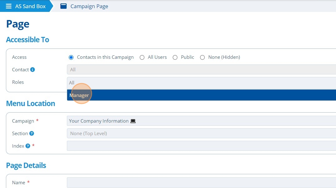 4. 👆 Select an option in the "Accessible To" section. This will control who can see the page.¶