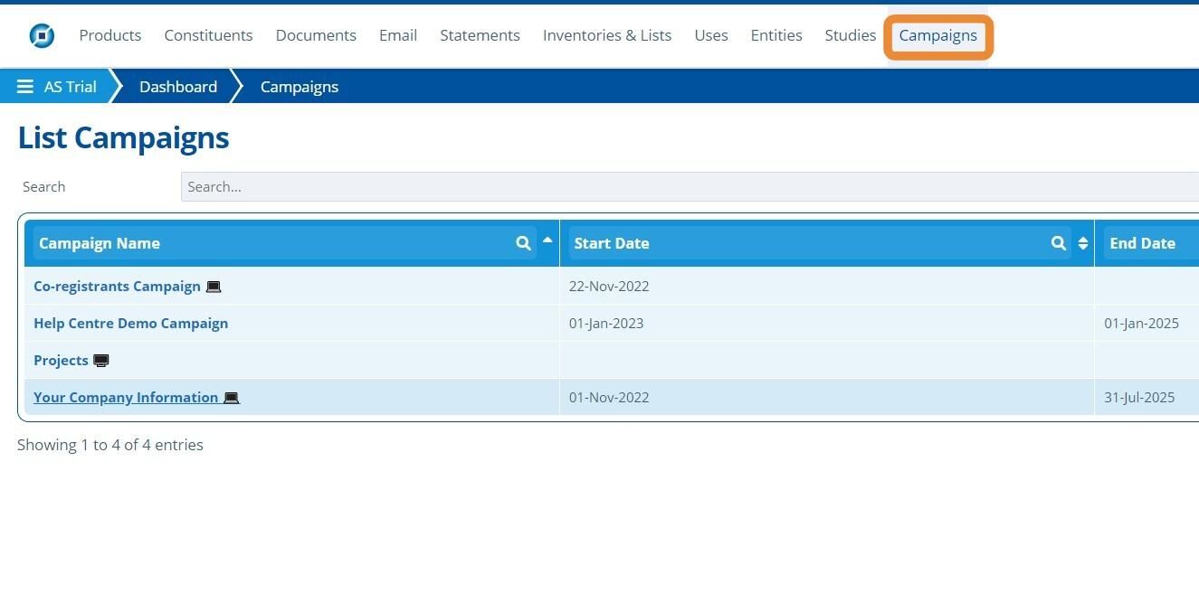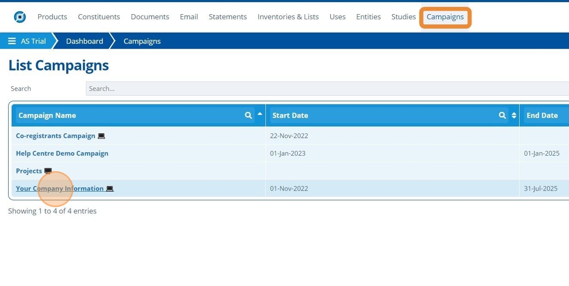 1. 👆 Navigate to Campaigns 👉 Select the campaign of interest from the list.¶