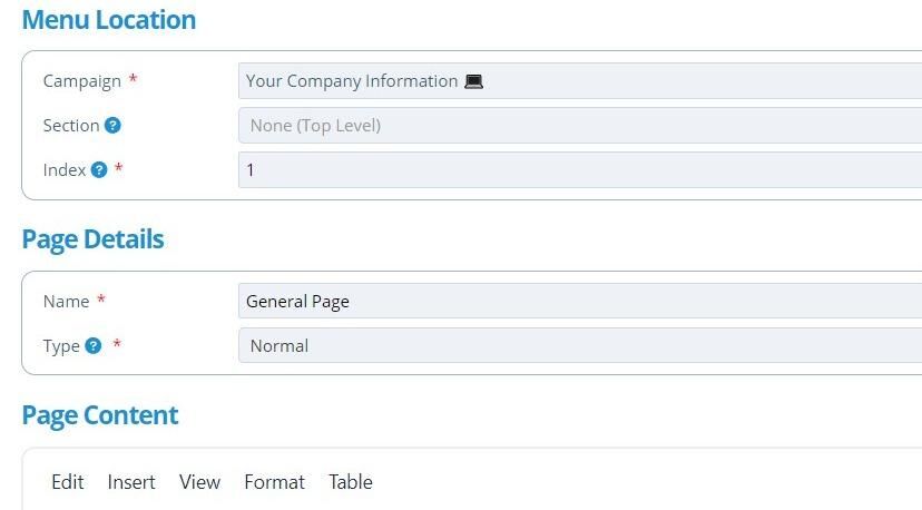 The type of page chosen will determine the layout of the webpage as each has a pre-defined structure. The "Normal" page type is empty, so can be customised as required. See the preview below with custom content added to it.