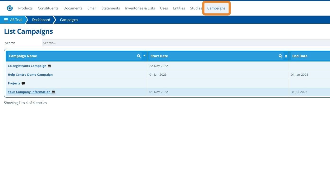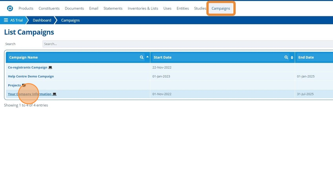 1. 👆 Navigate to Campaigns 👉 Select the campaign of interest from the list.¶