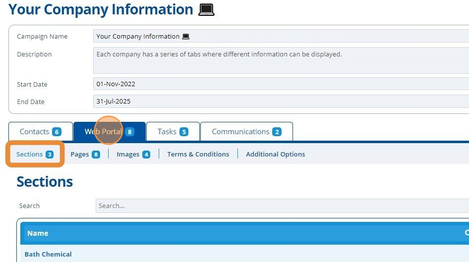 2. 👆 Click "Web Portal" 👉 Navigate to "Sections".¶