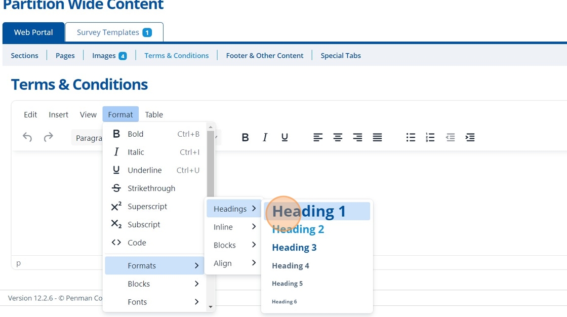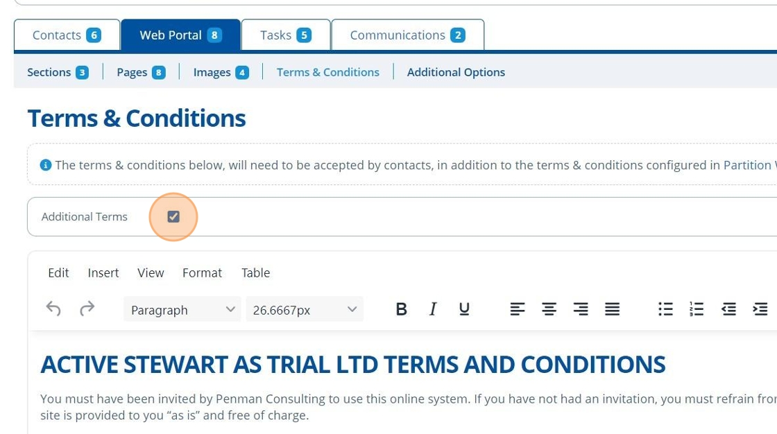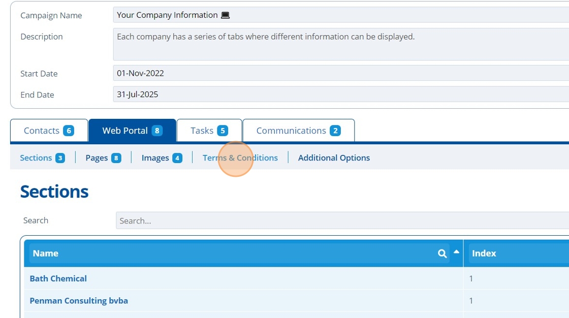 8. Under the "Web Portal" tab, 👆 click "Terms & Conditions".¶