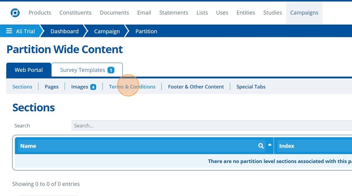 17. 🥳 The T&Cs are saved and are shown when a user accesses a partition without any partition level T&Cs.¶