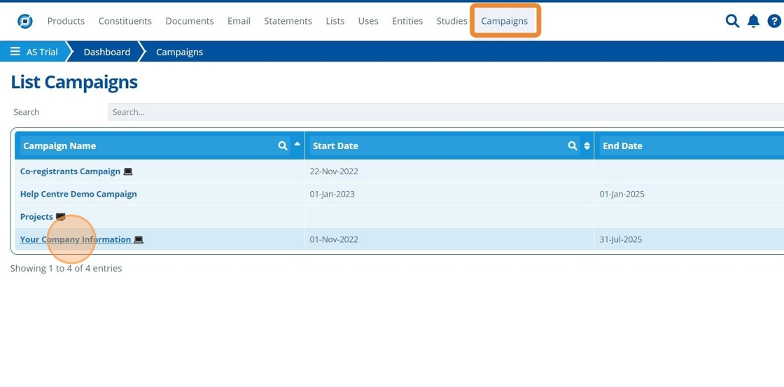 7. 👆 Navigate to Campaigns 👉 Select the campaign of interest from the list.¶