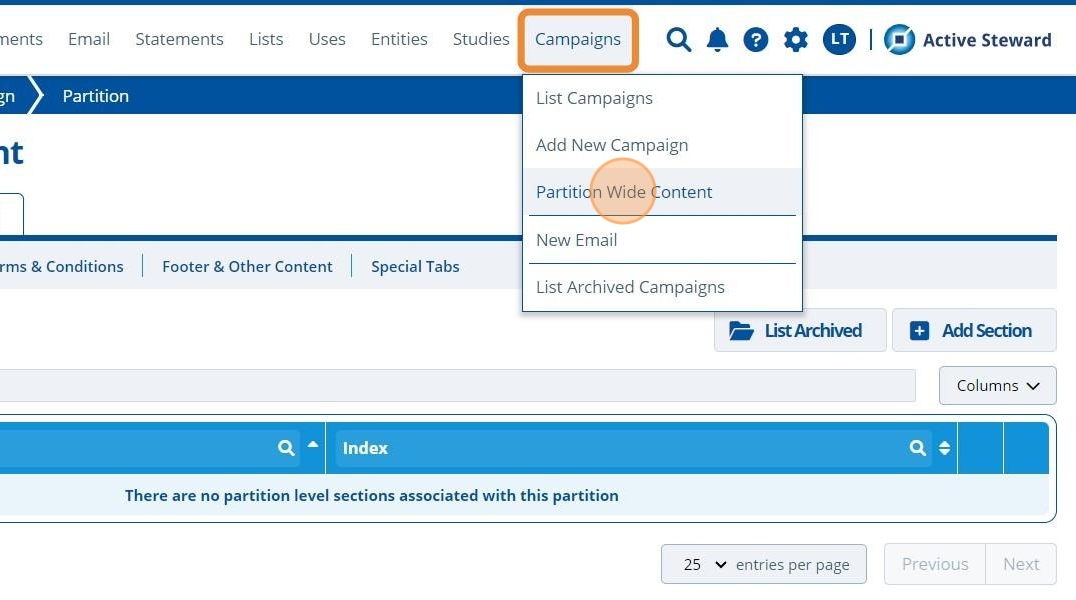 1. 👆 Navigate to Campaigns 👉 Click "Partition Wide Content".¶