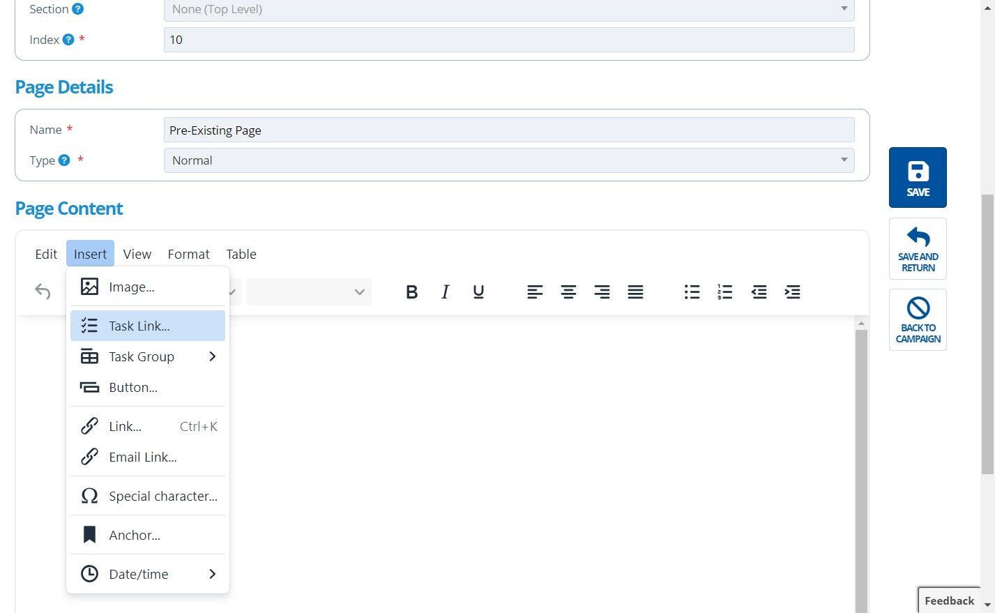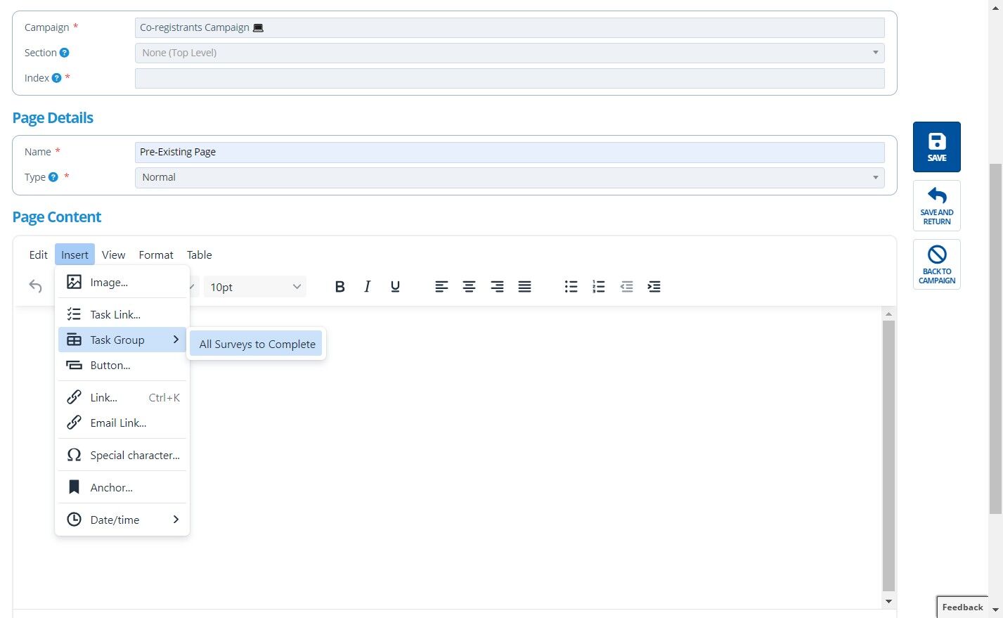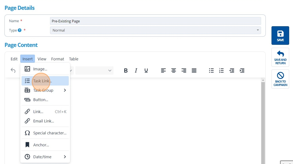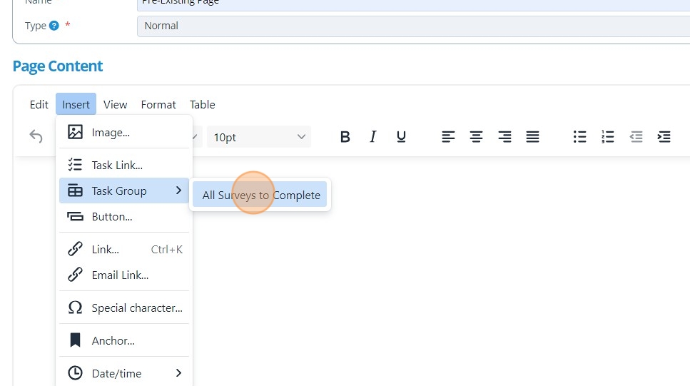 How to Insert a Task / Task Group onto a Page¶