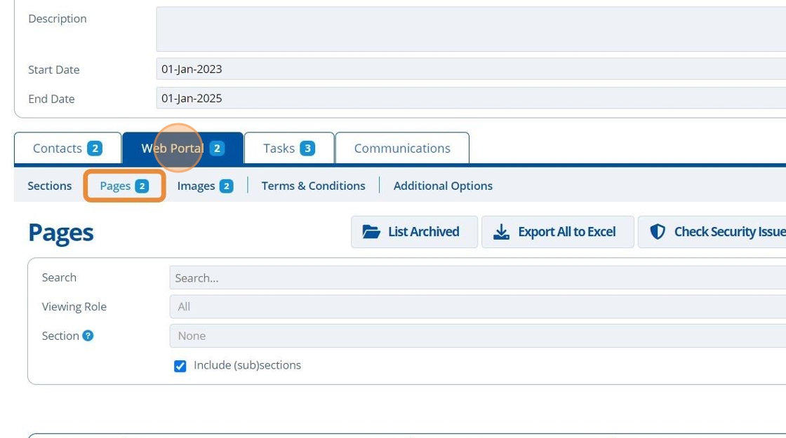 2. 👆 Click "Web Portal" 👉 Navigate to "Pages".¶