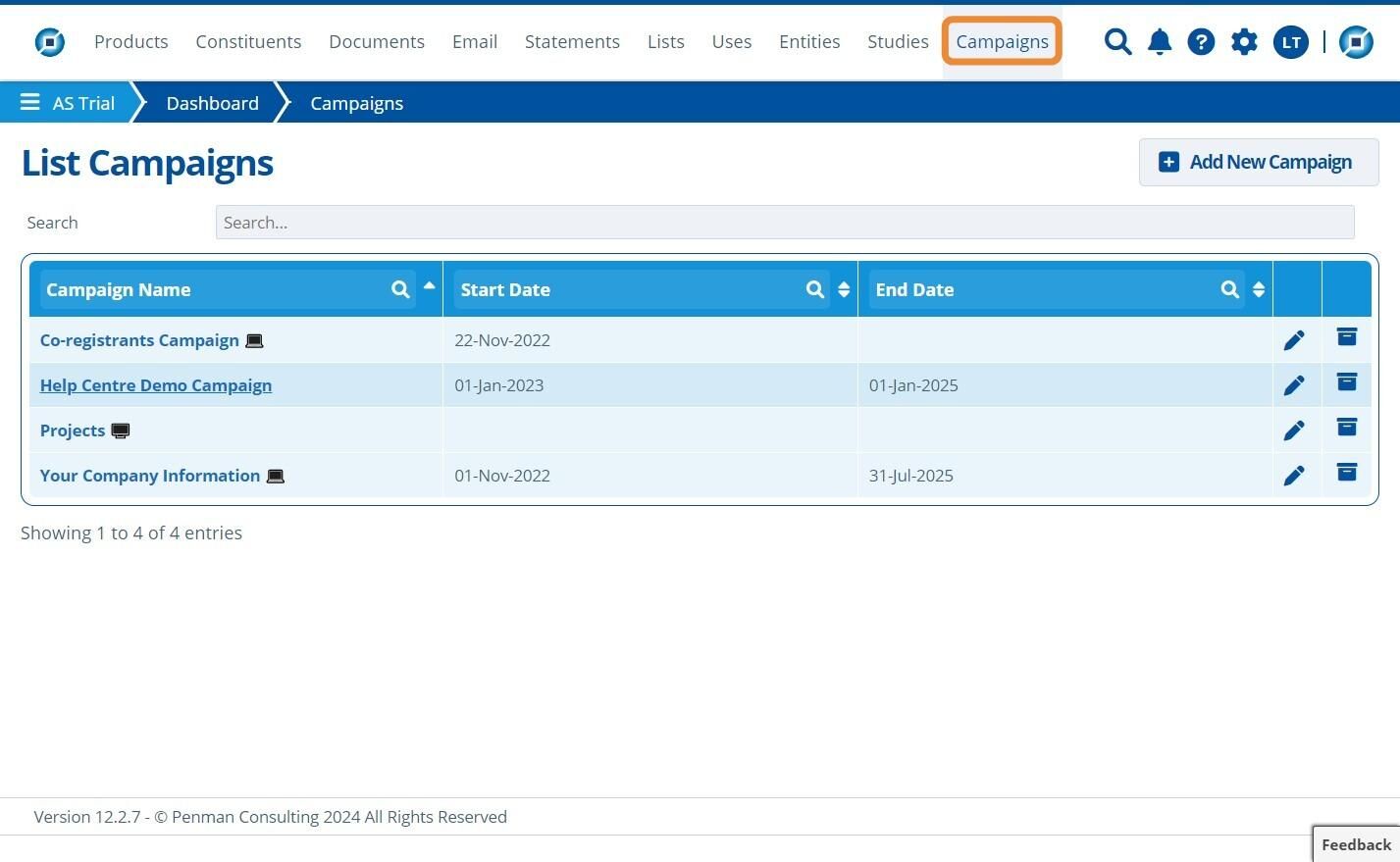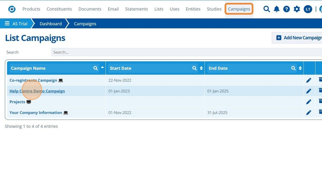 1. 👆 Navigate to Campaigns 👉 Select the campaign of interest from the list.¶