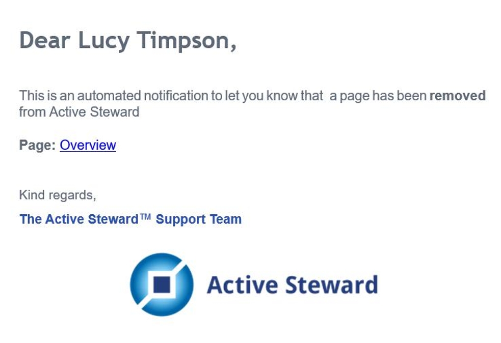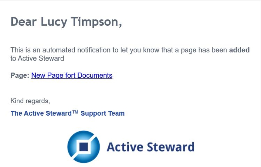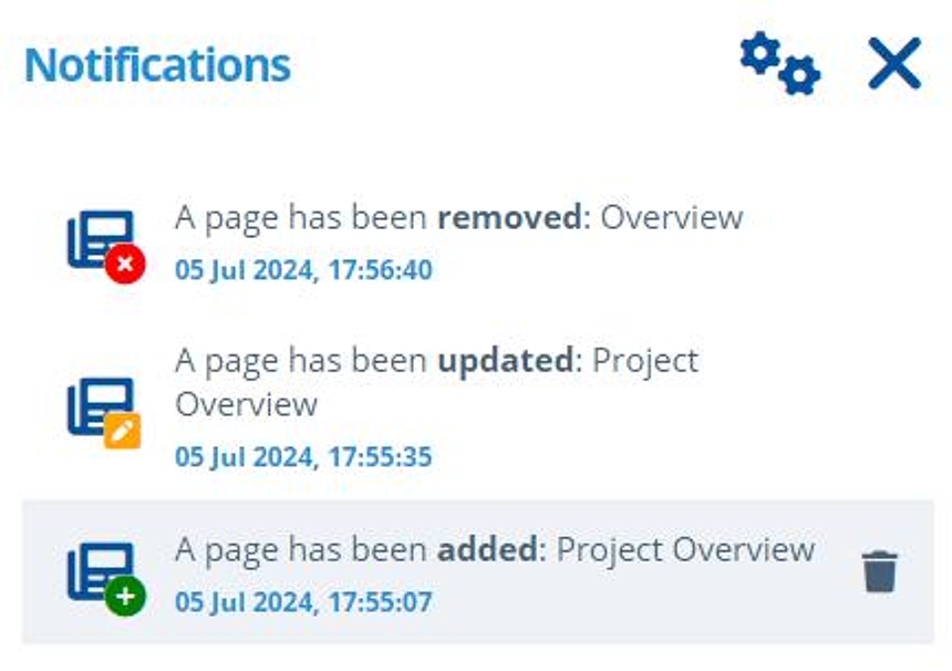 Alerts can be sent out about a page update, page deletion or a new page creation. Alerts get sent to those who have access to view the page.