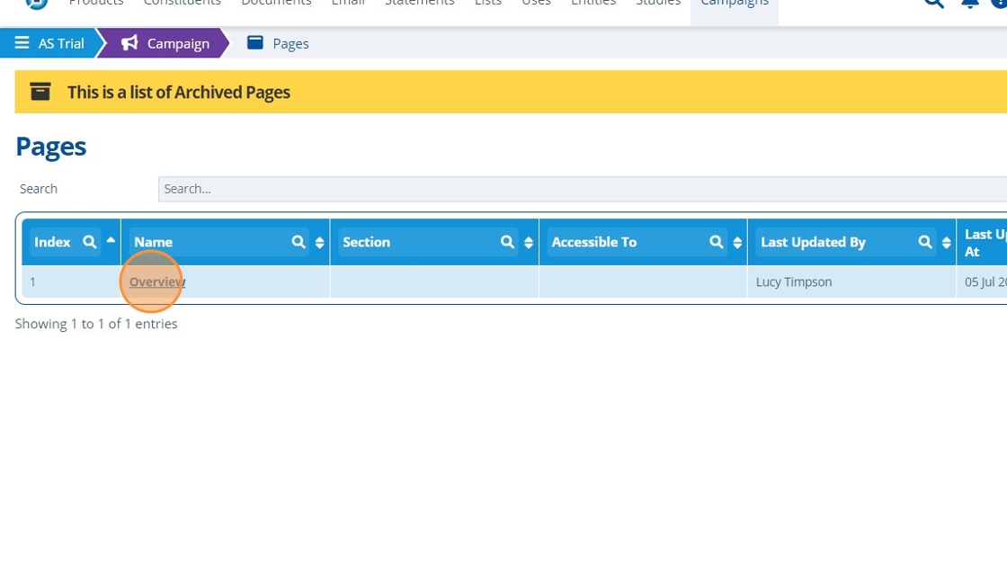 9. 👆 Click "List Archived" to go to the archived pages.¶