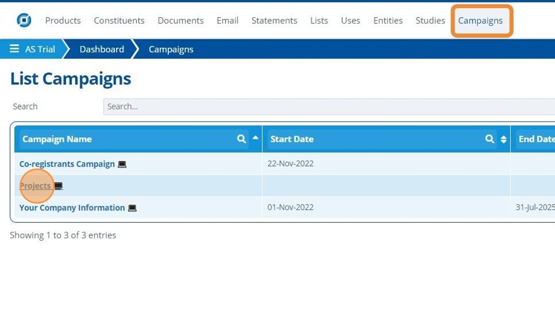 1. 👆 Navigate to Campaigns 👉 Select the campaign of interest from the list.¶