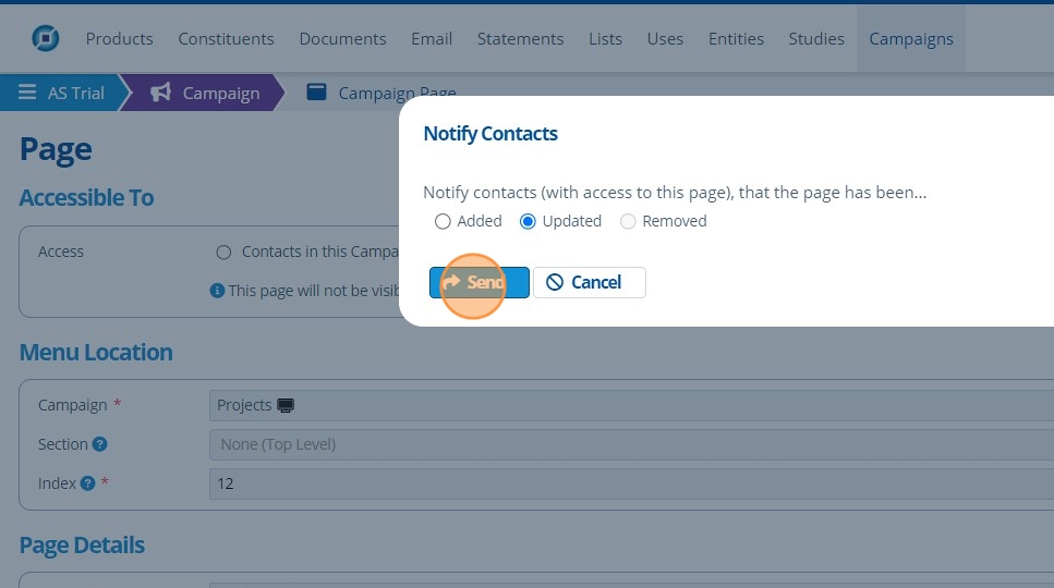 7. 👆 Select the "Updated" option 👉 click Send.¶