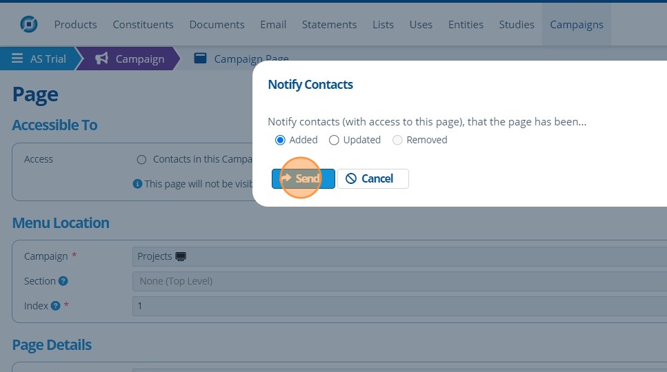13. 👆 Click "Add Page". Note that a page added notification can only be sent once per page.¶