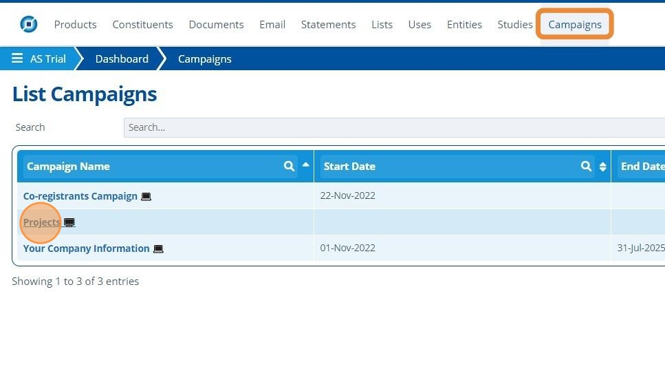 1. 👆 Navigate to Campaigns 👉 Select the campaign of interest from the list.¶