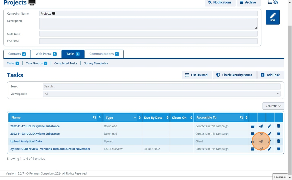 Notifications for tasks can be sent out to campaign contacts. This is useful to alert them that there is action to take in the campaign as well as providing them with a link to directly access the task.