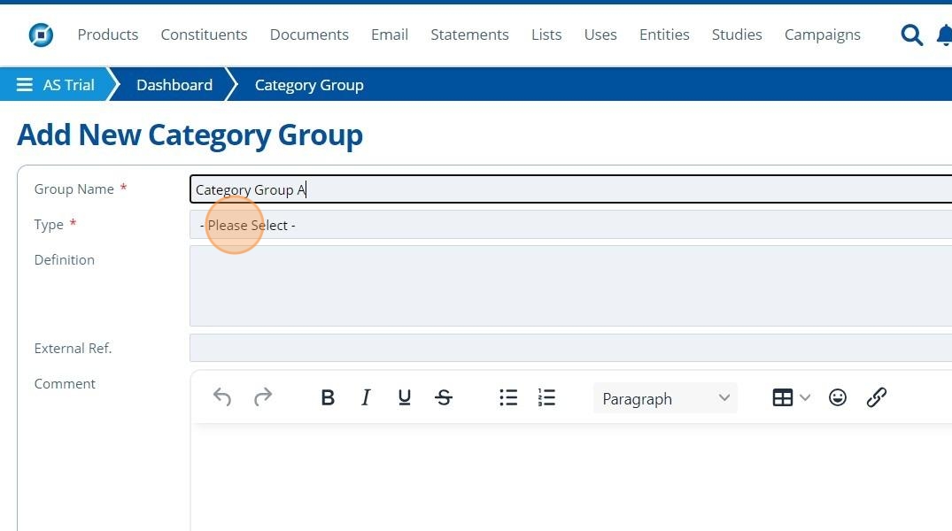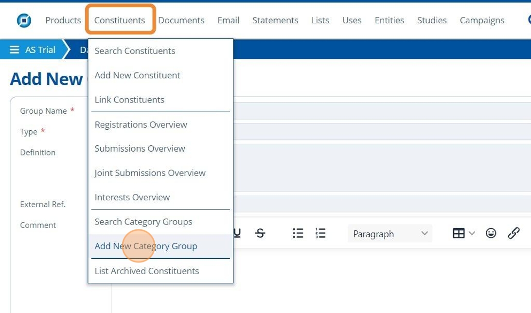 1. 👆 Navigate to Constituents 👉 "Add New Category Group".¶
