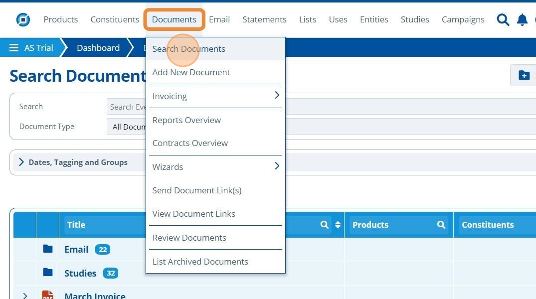 1. 👆 Navigate to Documents 👉 Search Documents.¶