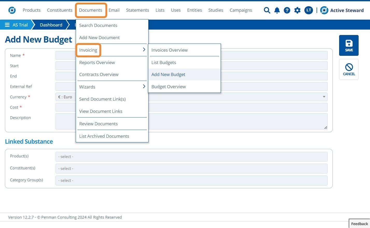 1. 👆 Navigate to Documents 👉 Invoicing 👉 Add New Budget.¶
