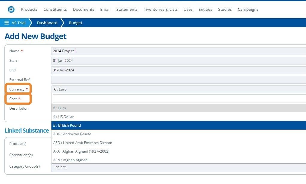 5. 👆 Link any Product(s)/Constituent(s)/Category Groups(s) to the budget if required.¶