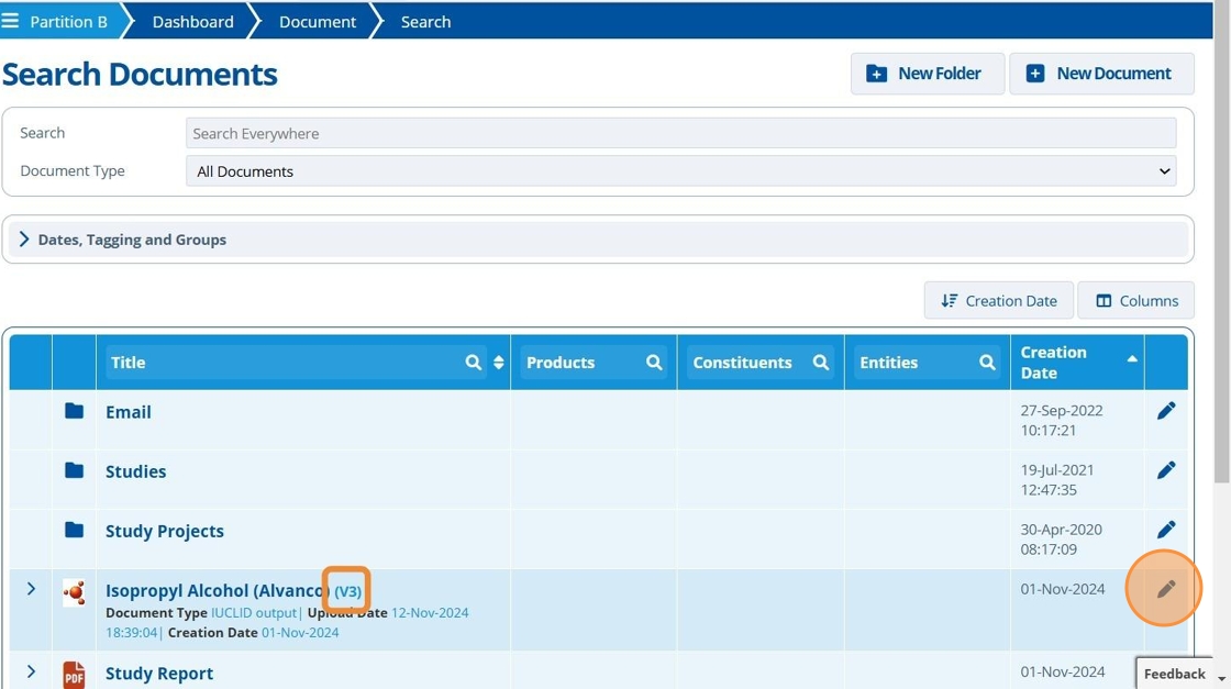 2. 👆 Click the edit icon next for the document to extract a version from.¶
