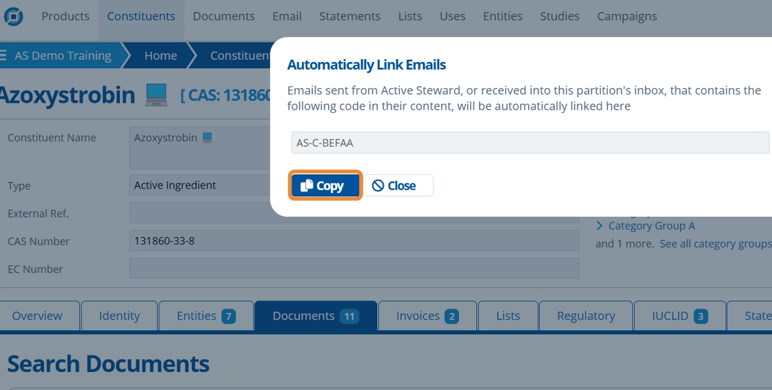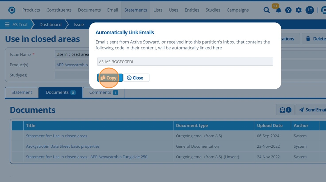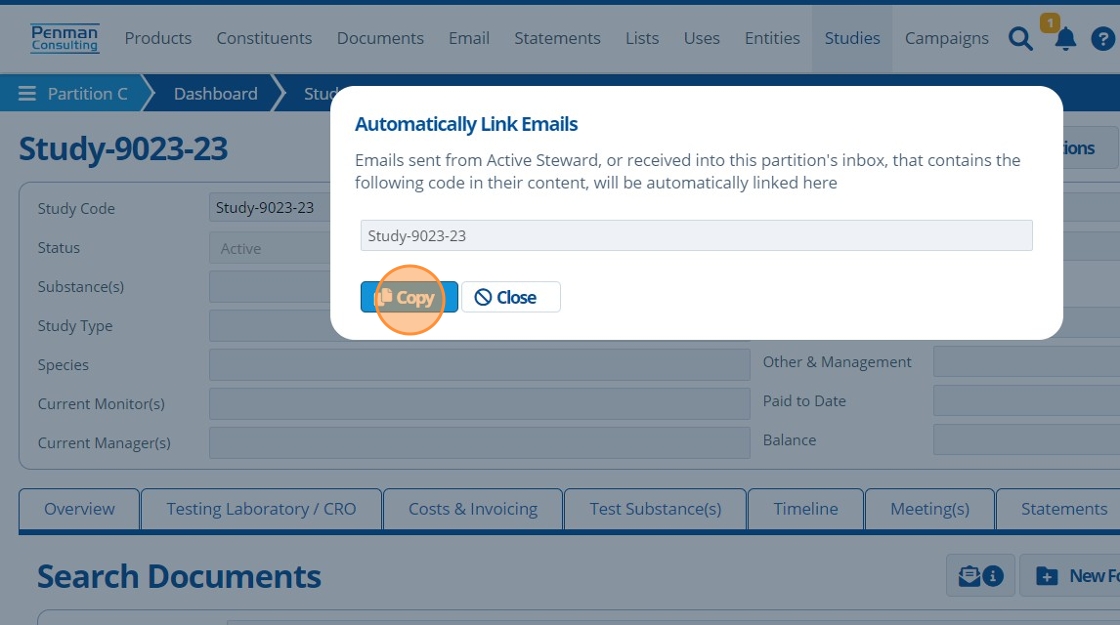 6. ✍️ Send an email to the Active Steward inbox that includes the study code copied in step 3. Attach a document to the email.¶