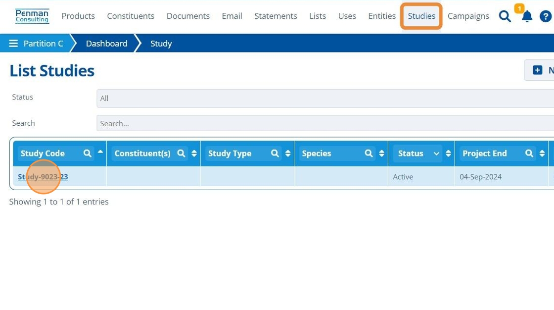1. 👆 Navigate to Studies 👉 Click the Study of interest from the list.¶
