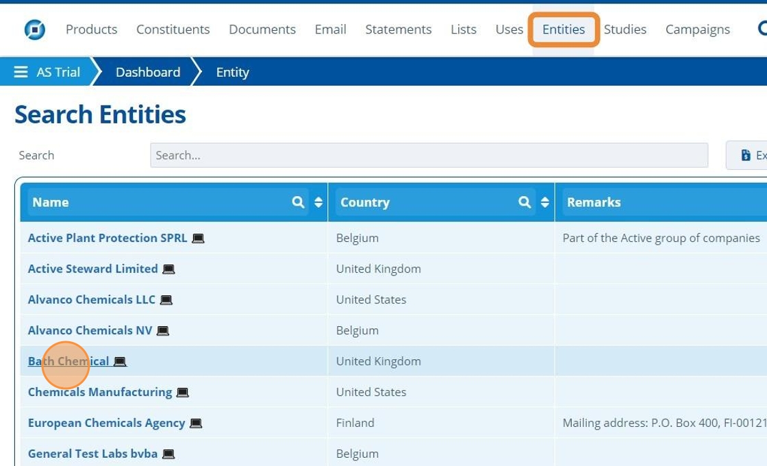 12. 👆 Navigate to Entities 👉 Click the Entity of interest from the list.¶