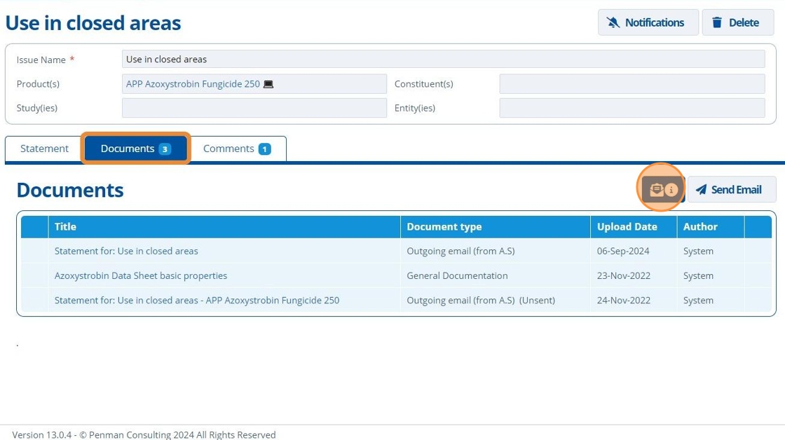 9. 👆 Navigate to the Documents tab 👉 Select the email icon.¶