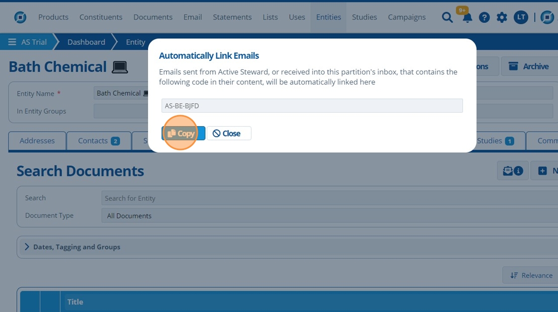17. 👆 Navigate to the Documents tab 👉 Select the email icon.¶