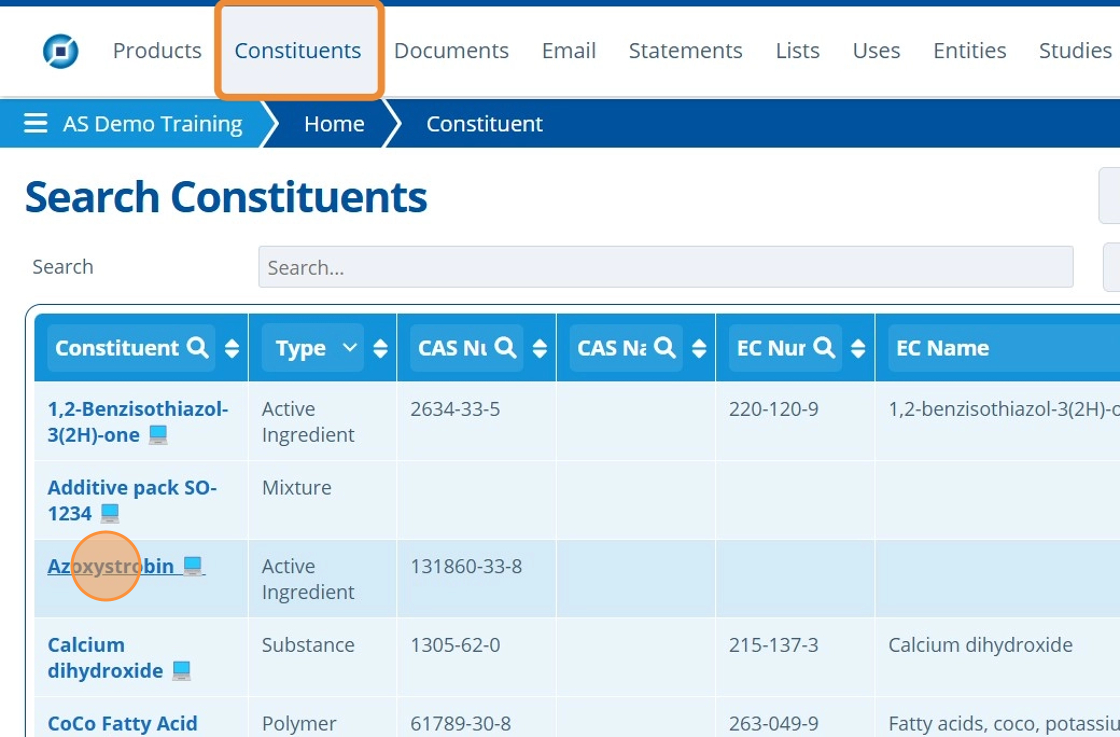 20. 👆 Navigate to Constituents 👉 Click the Constituent of interest from the list.¶
