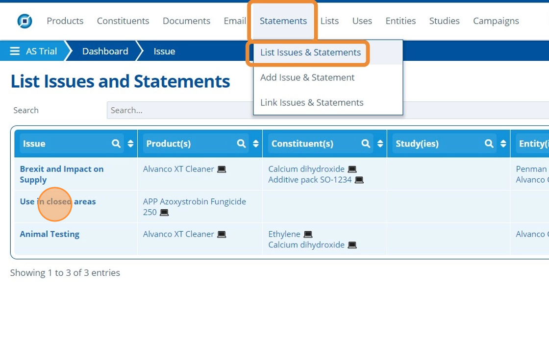 8. 👆 Navigate to Statements 👉 List Issues & Statements 👉 Click the Statement of interest from the list.¶