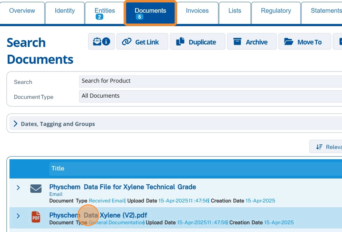 19. 🥳 The email and attachment(s) are saved, and are linked to the Product record. They can be found on the "Documents" tab.¶