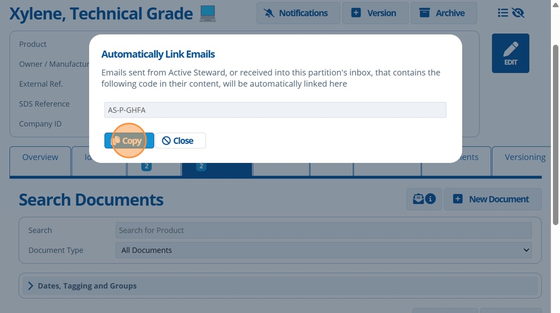 21. 👆 Navigate to the Documents tab 👉 Select the email icon.¶