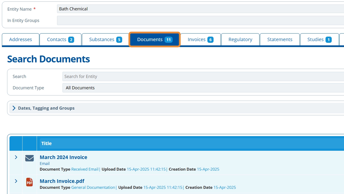 15. 🥳 The email and attachment(s) are saved, and are linked to the entity record. They can be found on the "Documents" tab.¶