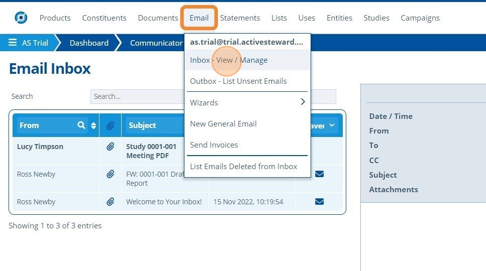 1. 👆 Navigate to "Email" 👉 "Inbox - View / Manage".¶